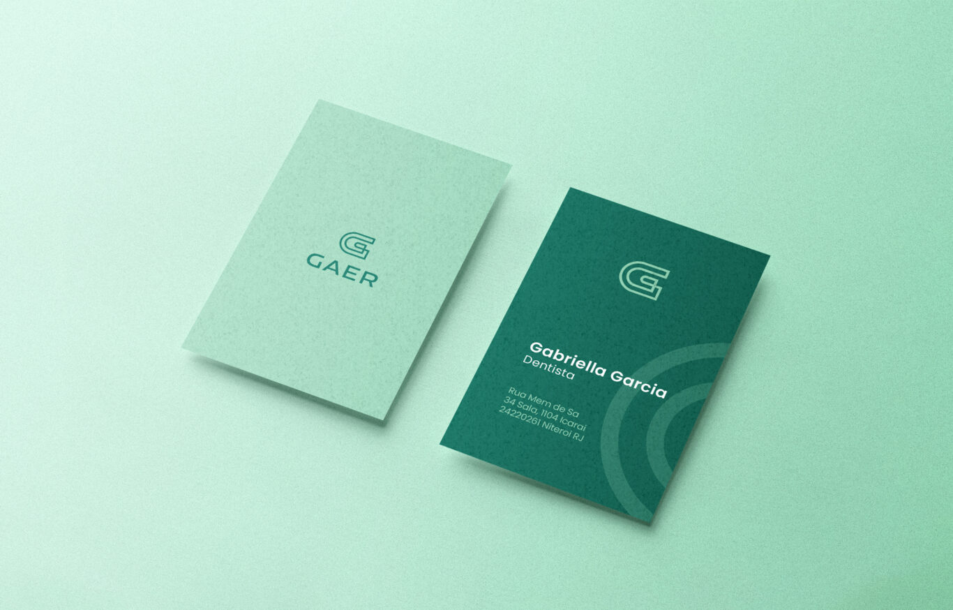 Gaer is a dental clinic located in Rio de Janeiro. For the creation of the logo, we selected the letter "G" as the main identifying element of our brand. By inverting the logo, we have designed the image of a tooth with a hook, which in turn forms the distinctive stroke of the letter "G".
